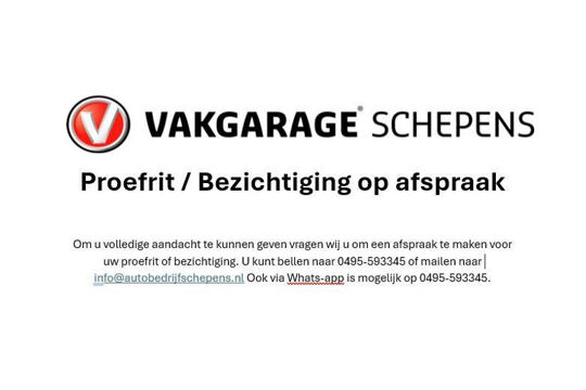 **Aan deze advertentie kunnen geen rechten worden ontleend. Alle moeite is genomen om de informatie zo actueel mogelijk weer te geven. Fouten zijn echter niet uit te sluiten. Vertrouw daarom niet alleen op deze informatie, maar controleer bij aankoop de zaken die uw beslissing zouden kunnen beïnvloeden. Vakgarage Schepens is niet aansprakelijk voor foutieve informatie!